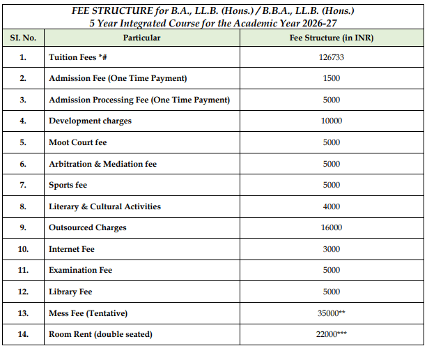 - The total fees for BALLB {Hons.} is ₹ 9.19 Lakhs.