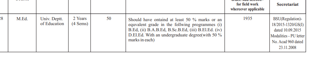 The minimum eligibility for admission to M.Ed at Patna University is B.Ed..