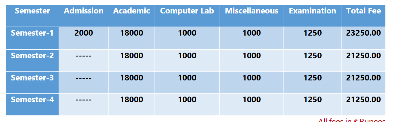 | Semester Wise Fees | ₹23250 | ₹21250 | ₹21250 | ₹21250 |