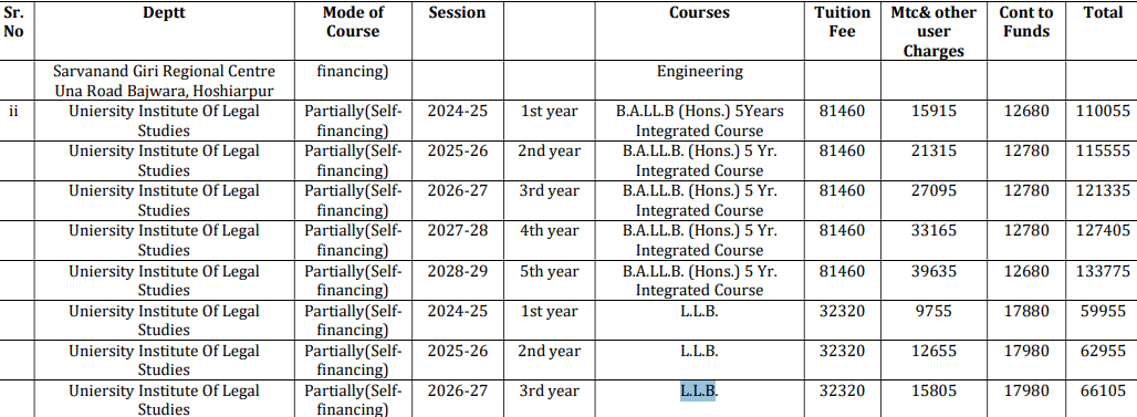 Each subject includes 90 lectures per semester, with additional presentation lectures. The university offers subsidized tuition due to government aid, making education accessible. Historically, a law degree cost around 30,000 INR; currently, fees are 14,000 INR for the first semester and 4,000 INR for the second. While scholarships for financially disadvantaged students and fee reimbursements for orphans are available, the overall scholarship scope is limited. Despite the presence of multinational companies, the placement cell, active for only two years, offers minimal job opportunities post-graduation.