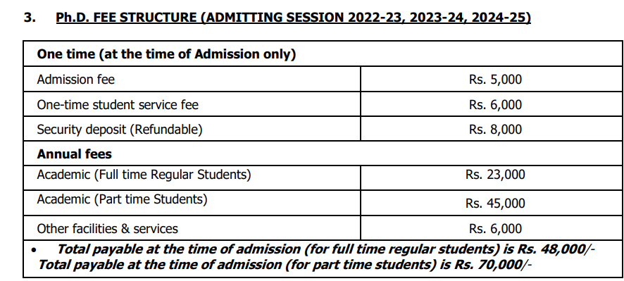 - The total fees for Ph.D Management and Humanities is ₹ 1.06 Lakhs.