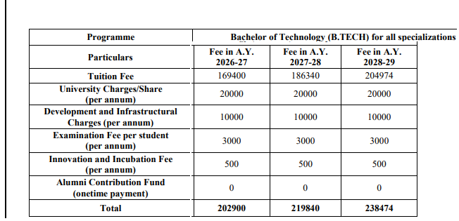 | Fees (2025 - 2026) | Year 1 (in INR) | Year 2 (in INR) | Year 3 (in INR) |