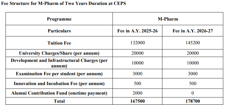 14 Oct, 2025 GGSIPU Fee Structure 2025-26 has been released for M.Pharm programs. The total academic fee is ₹ 3.46 Lakhs.