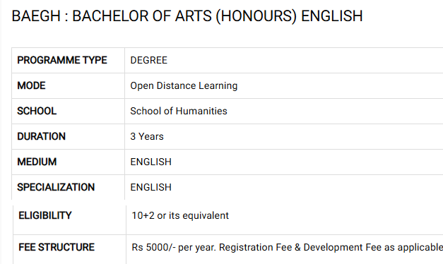 Open university students can independently pursue internships. The fee structure at IGNOU is affordable, with Indian students paying Rs. 6000 per semester and Rs. 120 per subject for Term End Exams. International students pay Rs. 12000 per semester and Rs. 150 per exam subject. The BA Hons English course costs Rs. 9600 over three years, with an additional Rs. 200 per exam subject. Despite the low fees, IGNOU does not provide campus placements or internships but offers free online notes, maintaining accessible education without fee hikes.