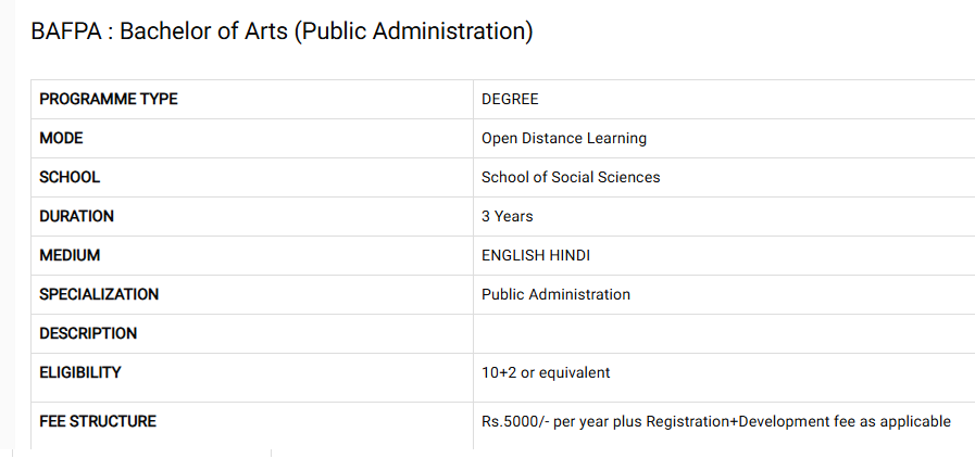 Earlier, BA Public Administration fees at IGNOU was ₹ 13,700 (in 2024) for the entire course duration. This shows a fee increase of ₹ 7,400 over the year.