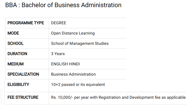 BBA at IGNOU is a 3 years, Part Time Degree program offered Distance.