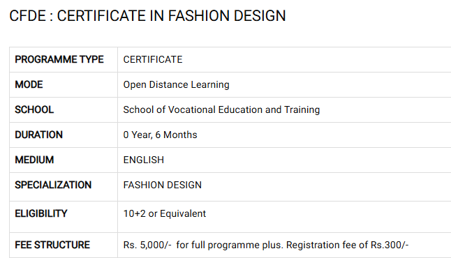 IGNOU Certification Fashion Design fees 2025 is ₹ 5,300 for the entire course duration.