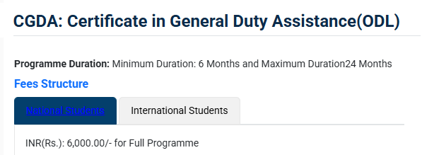 IGNOU Certificate General Duty Assistant fees 2025 is ₹ 6,000 for the entire course duration.