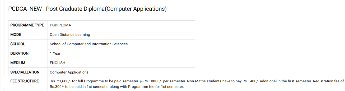 | Date for Submission of Application for July Session 2025 [PG Diploma in Computer Applications] | May 15, 2025 - Jun 30, 2025 |