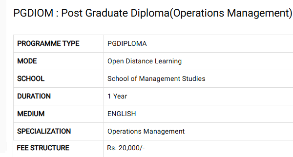 IGNOU PG Diploma Operations Management fees 2025 is ₹ 9,600 for the entire course duration.