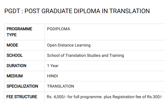 IGNOU PG Diploma Translation fees 2025 is ₹ 20,000 for the entire course duration.