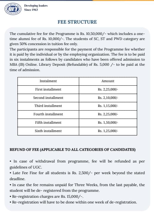 - Candidates need to pay ₹ 4.98 Lakhs in the first year.