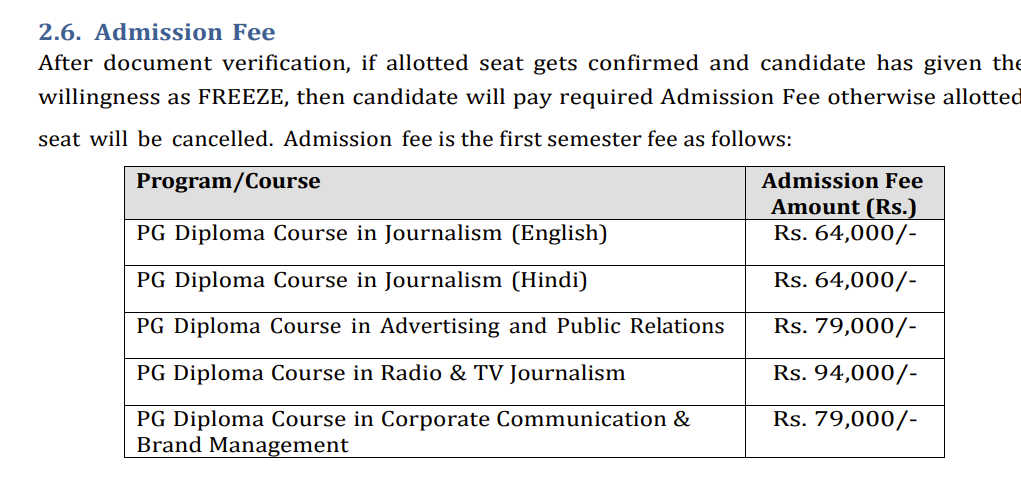 - Candidates need to pay ₹ 1.58 Lakhs in the first year.