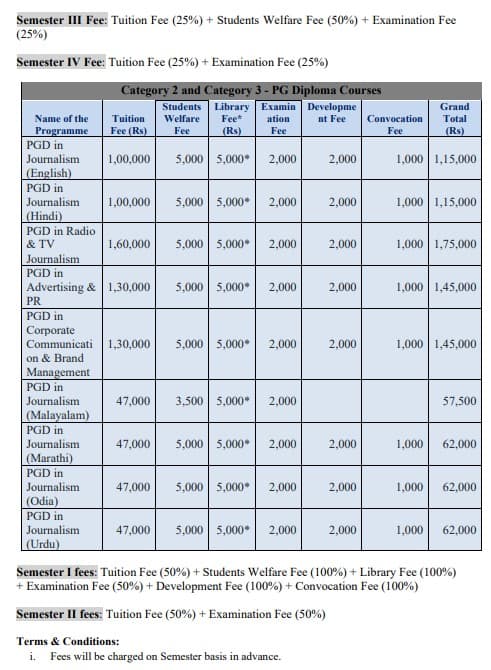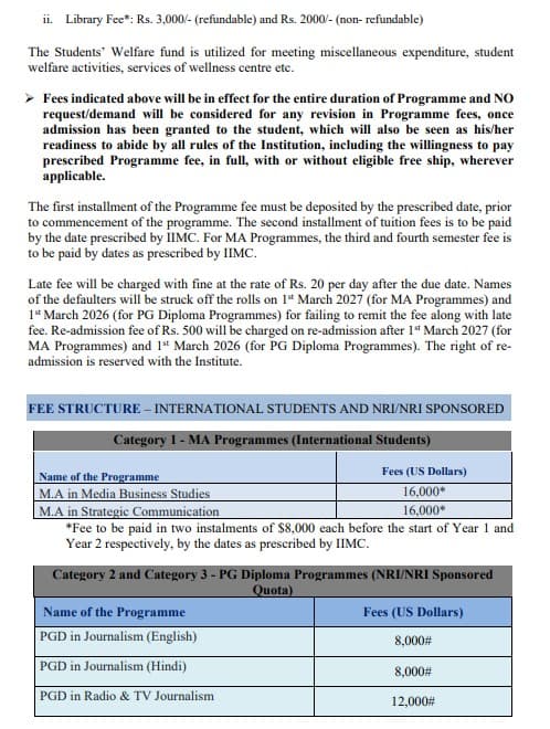Earlier, PG Diploma Advertising And Public Relations fees at IIMC Delhi was ₹ 1.32 Lakhs (in 2023) for the entire course duration. This shows a fee increase of ₹ 13,500 over the year.