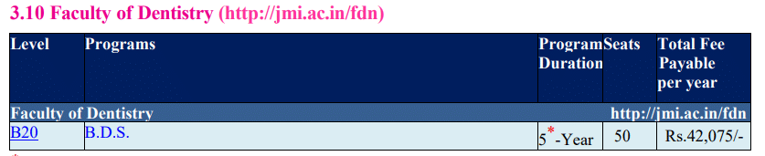 The university offers a Bachelor of Dental Surgery (BDS) program requiring NEET exam clearance and an entrance test by Jamia Millia Islamia, with a 25% internal quota. The program features a dedicated hospital facility, specialized departments, and well-qualified faculty, fostering a low failure rate. The annual fee totals approximately INR 56,000, including a feasible tuition fee of INR 30,000 and hostel charges around INR 26,000, with transparency in the fee structure.