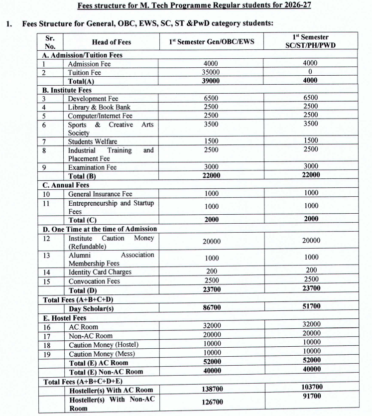 NIT Delhi M.Tech Power Electronics and Drives fees 2025 is ₹ 5.33 Lakhs for the entire course duration.