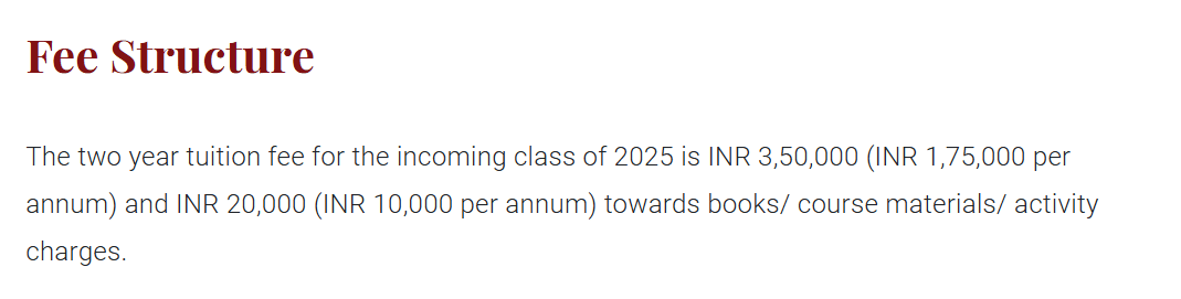 | Fees (2025 - 2026) | Year 1 (in INR) | Year 2 (in INR) |
