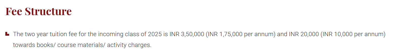 | Fees (2025 - 2026) | Year 1 (in INR) | Year 2 (in INR) |