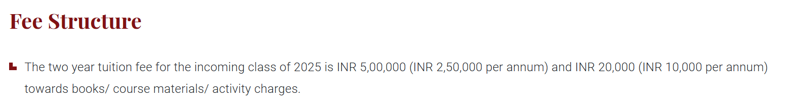 - Candidates need to pay ₹ 2.6 Lakhs in the first year.