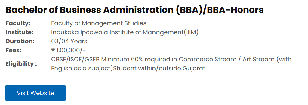 Earlier, BBA Entrepreneurship fees at CHARUSAT was ₹ 2.25 Lakhs (in 2024) for the entire course duration. This shows that the fee has remained unchanged since 2024.