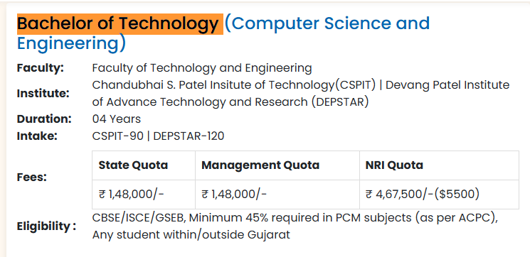 There are three fee categories: General, Management, and NRI, with the latter costing approximately 3.5 lakhs INR. Scholarships, including government schemes, help offset costs, with options like the MYSY and TFWS schemes providing significant financial aid. Charusat University boasts a strong placement record, with 100% placement for interested students. Major recruiters include TCS, Infosys, Byju's, Amazon, and Adani, offering packages from 3 LPA to 35 LPA, with an average of 6 to 8 LPA.