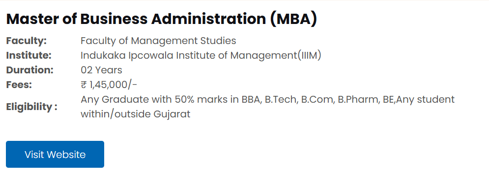 Earlier, MBA fees at CHARUSAT was ₹ 2.9 Lakhs (in 2024) for the entire course duration. This shows that the fee has remained unchanged since 2024.