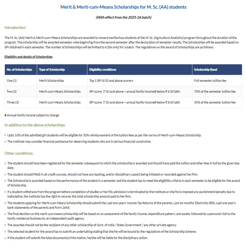 Students work on projects using skills in earth observation, Python, machine learning, and deep learning. The cost per semester includes a tuition fee of Rs. 65,000, a value-added course fee of Rs. 25,000, hostel rent of Rs. 24,000, and variable food expenses, totaling approximately Rs. 1,30,000 to Rs. 1,40,000. Scholarships are available for the top 3 students, along with government scholarships. On admission, a payment of Rs. 1,15,000 is required, comprising tuition, a refundable Rs.
