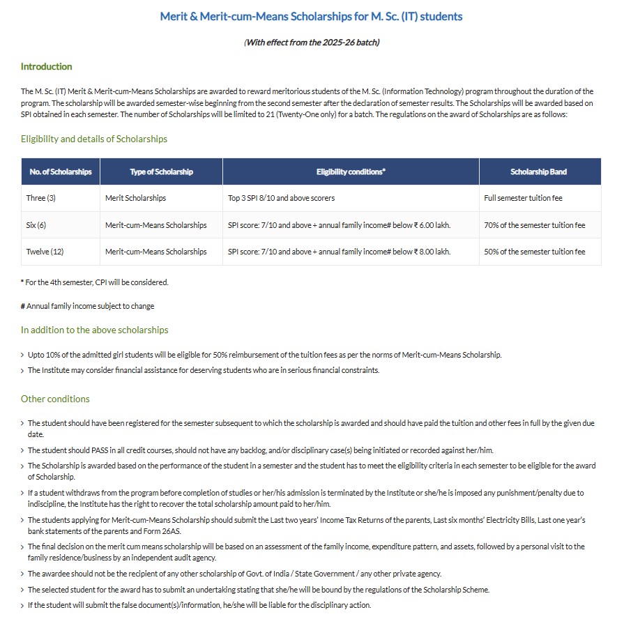 The MScIT fee is 75,000 rupees per semester, with an additional 15,000 rupees for hostel rent, excluding food, which is mandatory for BTech students. Despite concerns about fees, especially during the non-study fourth semester, the structure is considered reasonable due to excellent placement opportunities and facilities. The college ranks 11th globally, with average placement packages over 10 lakh per annum and the highest reaching 45 lakh. BTech students receive a 100% placement assurance with an average package of 7 lakh.