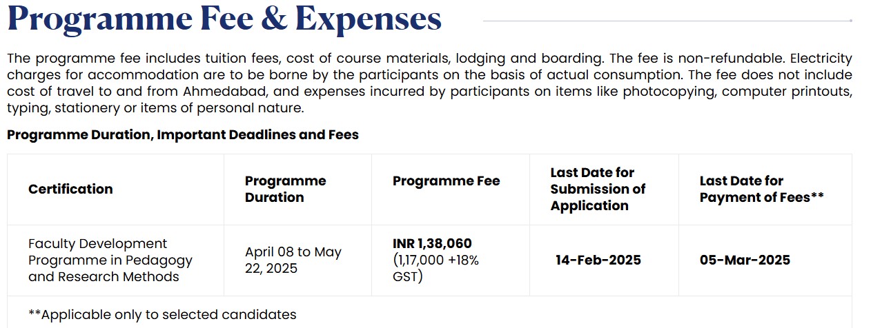 Earlier, FDP fees at IIM Ahmedabad was ₹ 1.2 Lakhs (in 2024) for the entire course duration. This shows a fee increase of ₹ 17,700 over the year.