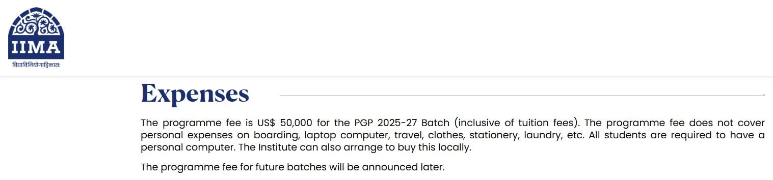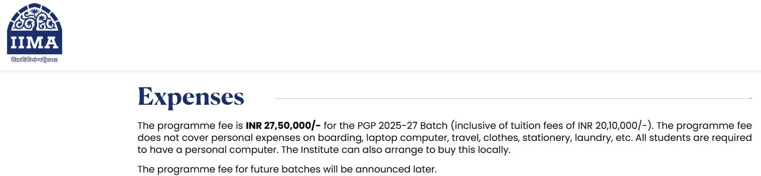 | IIM Ahmedabad | INR 27.5 lakhs |