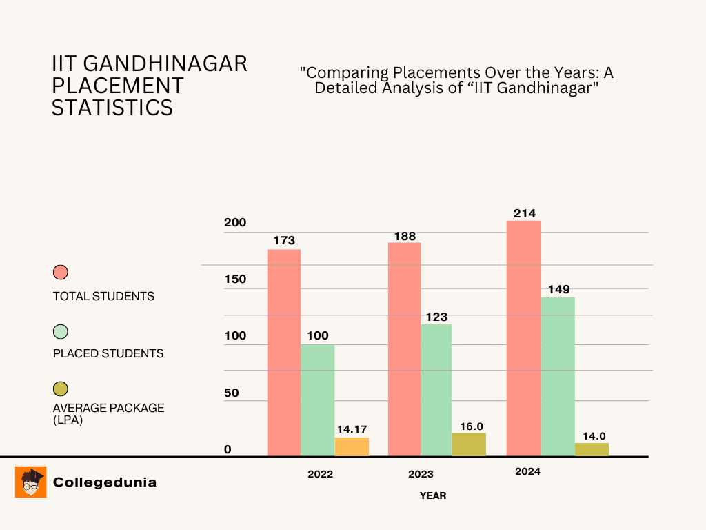 IIT Gandhinagar Placement Report 2025 has not yet been released. However, according to the 2024 report, the average package offered was INR 14 LPA, where 214 students registered & 149 of these students secured placements. The placement percentage was 69.63%. Accenture, Amazon, Amul, Cognizant, Byjus, Deloitte, Adobe etc. are the prominent recruiters at the IIT Gandhinagar.