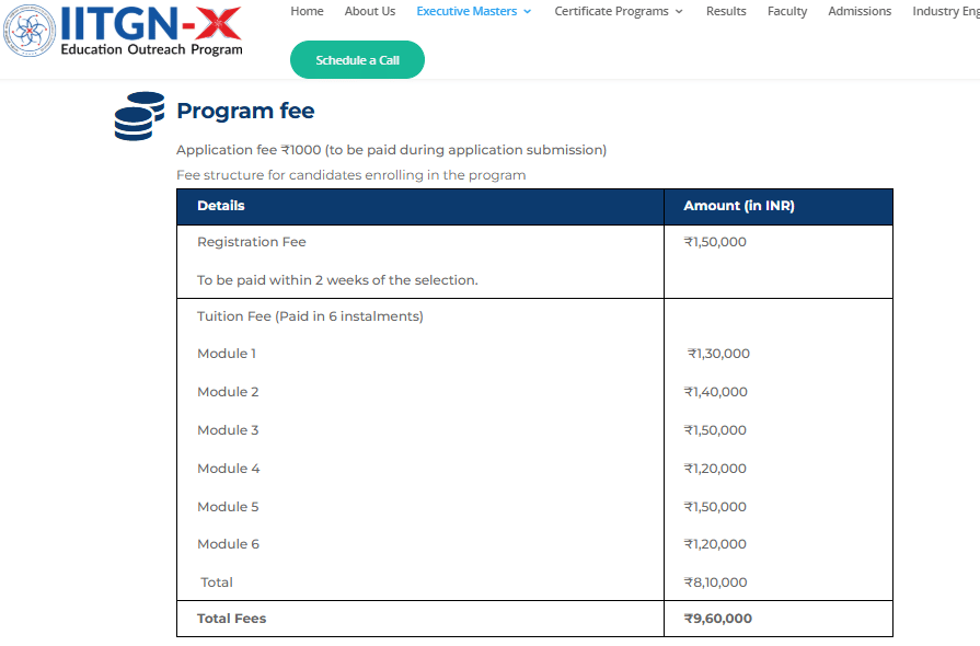 - The total fees for e-Masters is ₹ 9.6 Lakhs.