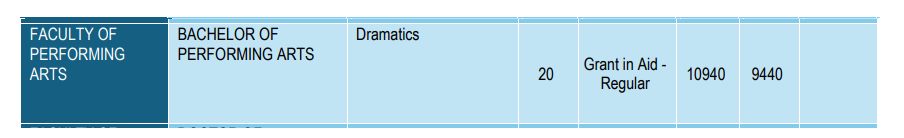 MSU Baroda BPA Drama Previous Fees