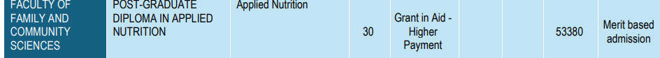 MSU Baroda Diploma Applied Nutrition Admission Process