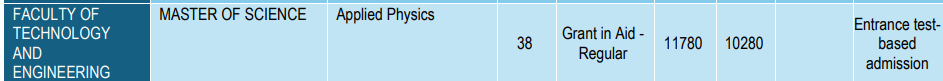The admission process for the M.Sc. program at MSU involves an online application and an entrance exam based on BSc-level content, held offline in the Applied Physics department. Successful candidates are selected based on exam performance, followed by document submission. The faculty is highly qualified, with all members holding PhDs and being active in research. The program's annual fee is about 10,000 INR, with additional living expenses ranging from 5,000 to 7,000 INR.