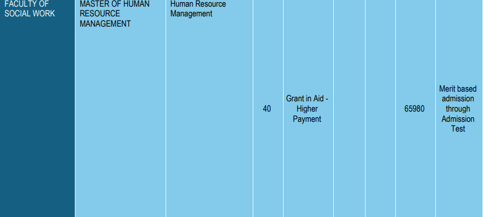 MSU Baroda offers a total of 40 seats for MHRM . Candidates must have at least Graduation with 50% to be eligible for admissions. Check MSU Baroda Admission 2025