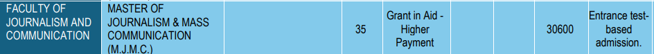 The MJMC course at the Faculty of Journalism and Mass Communication involves a three-step admission process: a written test, group discussion, and personal interview. Results are announced online one to two weeks post-interview. Each semester includes 45 one-hour lectures per subject, with a mandatory 80% attendance. Faculty are on contracts, supplemented by industry expert sessions. The annual program fee is INR 30,000, and hostel accommodation is optional at an additional INR 10,000.