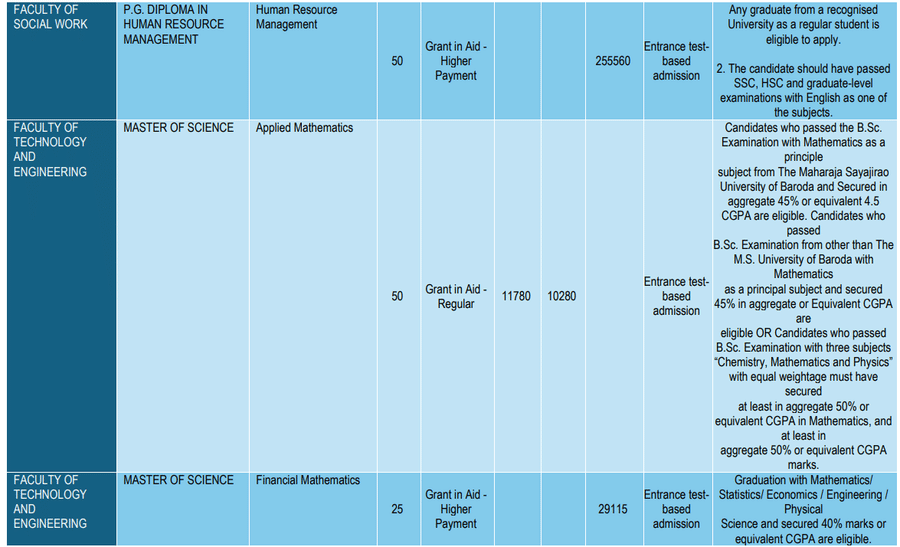 Earlier, M.Sc Applied Mathematics fees at MSU Baroda was ₹ 20,000 (in 2020) for the entire course duration. This shows that the fee has remained unchanged since 2020.