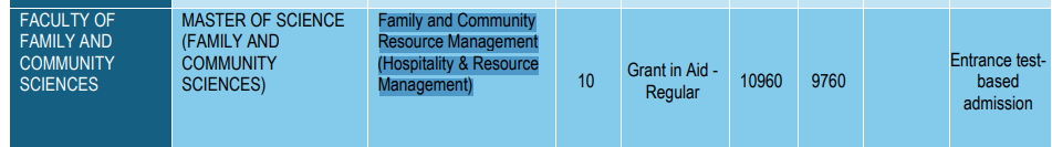 MSU Baroda offers a total of 10 seats for M.Sc Family Resource Management. Candidates must have at least Graduation to be eligible for admissions. Check MSU Baroda Admission 2025