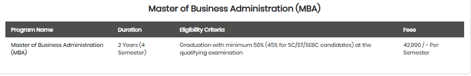 The MBA program costs a total of Rs. 171,990, with an additional registration fee of Rs. 14,500 for admission and exam expenses. Scholarships offering up to Rs. 20,000 are available for high-achieving students, providing financial support.