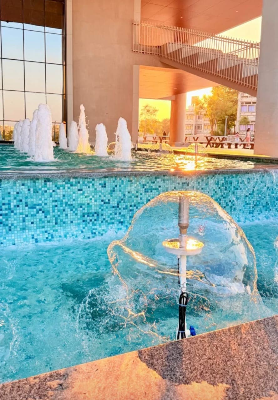 Definitely the fountains around the hostel buildings as there are two hostels and are divided by a fountain of water.