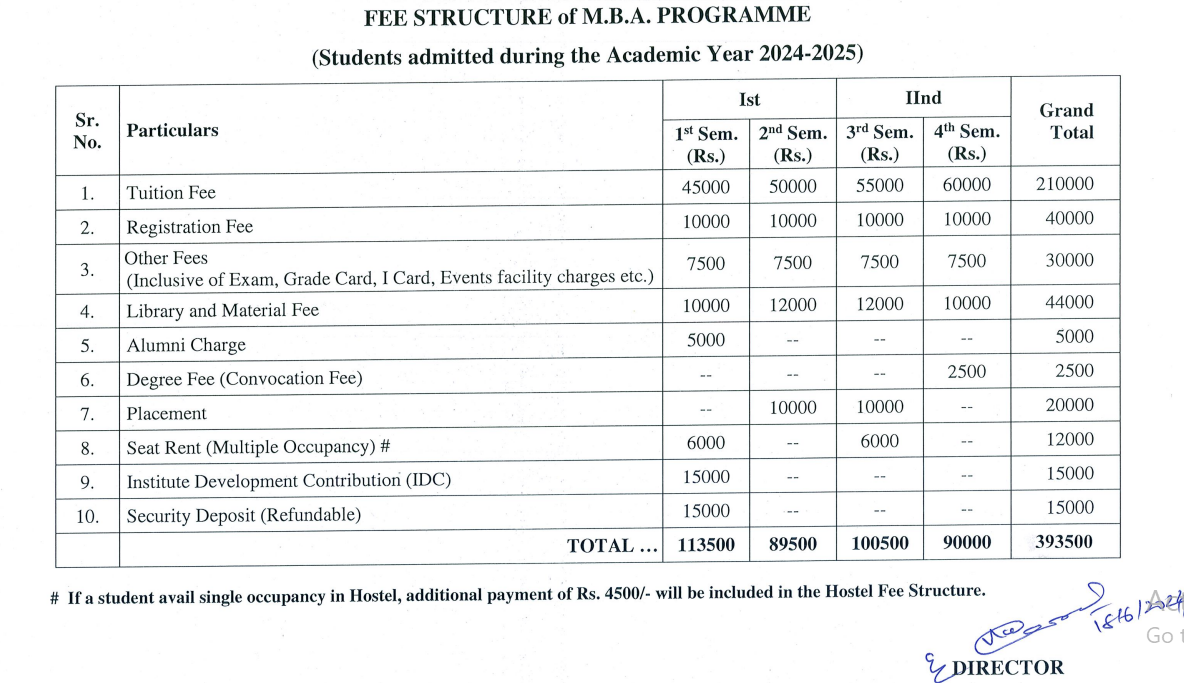 - Candidates need to pay ₹ 1.85 Lakhs in the first year.