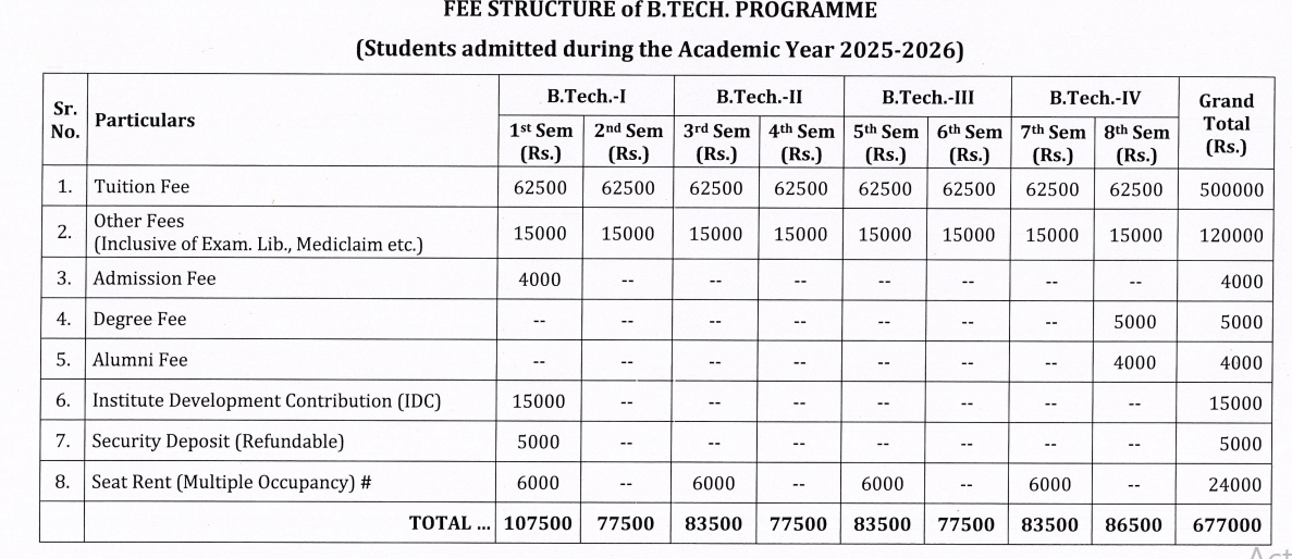 Earlier, B.Tech + MBA fees at NIT Surat was ₹ 7.58 Lakhs (in 2024) for the entire course duration. This shows a fee increase of ₹ 1.23 Lakhs over the year.