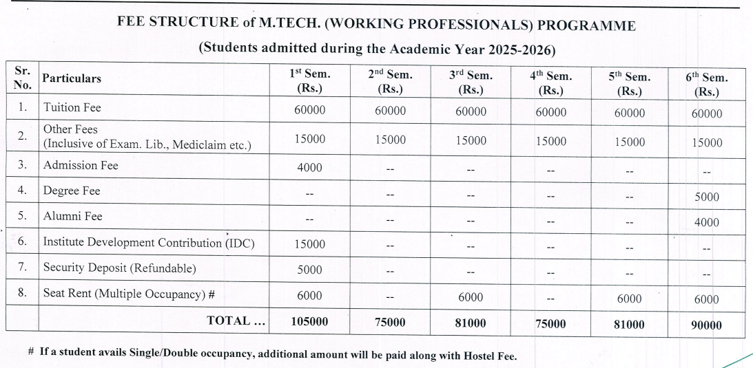 Earlier, M.Tech Vlsi Design fees at NIT Surat was ₹ 2.1 Lakhs (in 2024) for the entire course duration. This shows a fee increase of ₹ 2.98 Lakhs over the year.