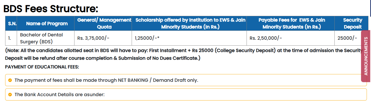 The annual tuition fee is 3.75 lakhs, while dentistry students pay 4,25,000 INR for Jain and 4,75,000 INR for Non-Jain students, excluding a 40,000 INR instrument fee. Though the fees are high, they are justified by the quality education, food, and hostel facilities offered. A comprehensive 1-year internship across all nine dentistry departments is part of the program, providing valuable experience despite being unpaid. This experience aids in securing jobs in reputable hospitals afterwards.