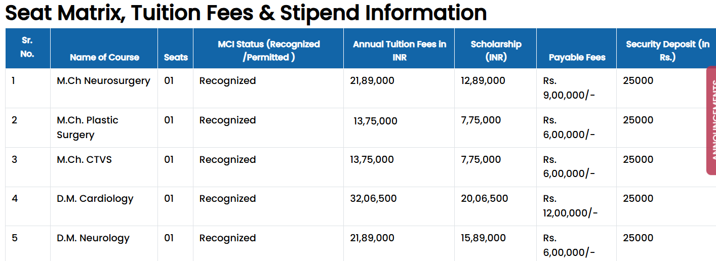 | Yearly Fees | ₹3231500 | ₹3206500 | ₹3206500 |