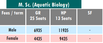 Earlier, M.Sc Aquatic Biology And Fisheries fees at VNSGU was ₹ 27,740 (in 2023) for the entire course duration. This shows a fee decrease of ₹ 13,870 over the year.