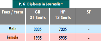 VNSGU PG Diploma Journalism is offered as 1 Year Full Time program, with total intake of 44 seats. The minimum eligibility criteria for PG Diploma is Graduation with 40%. The total fees for VNSGU PG Diploma Journalism in 2025 is ₹ 3,335 for the complete course duration, which includes total tuition fees of ₹ 3,335. Earlier, the fees in 2023 - 2024 for PG Diploma Journalism was ₹ 11,630.