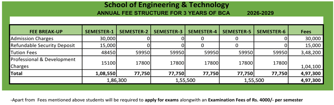 Earlier, BCA Full Stack fees at Sushant University was ₹ 5.18 Lakhs (in 2025) for the entire course duration. This shows a fee increase of ₹ 3,000 over the year.