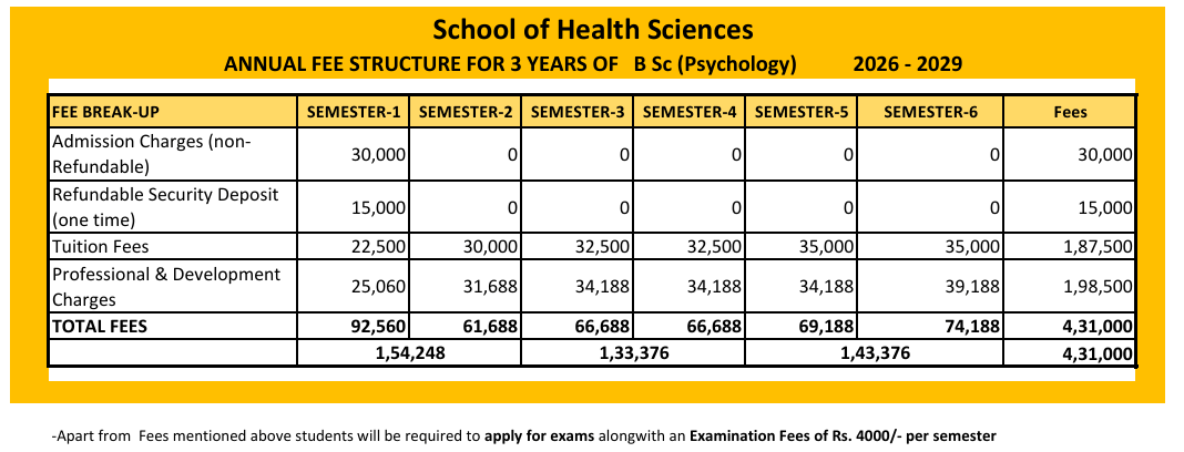 Sushant University B.Sc Psychology fees 2026 is ₹ 4.55 Lakhs for the entire course duration.